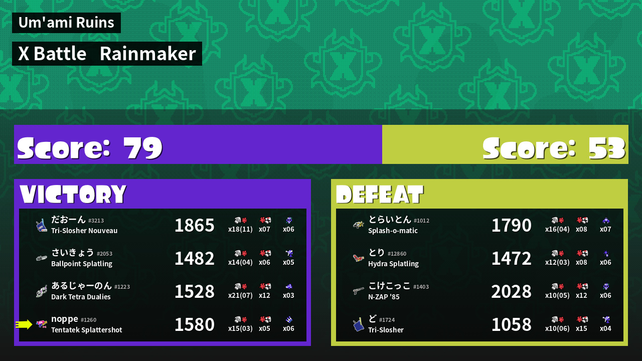 | Mode | Rainmaker - X Battle | ||