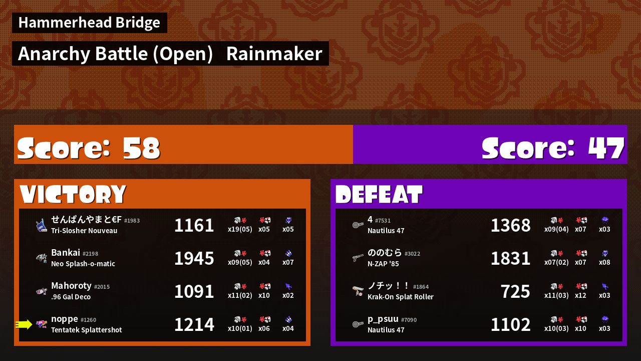 | Mode | Rainmaker - Anarchy Battle (Open) | ||