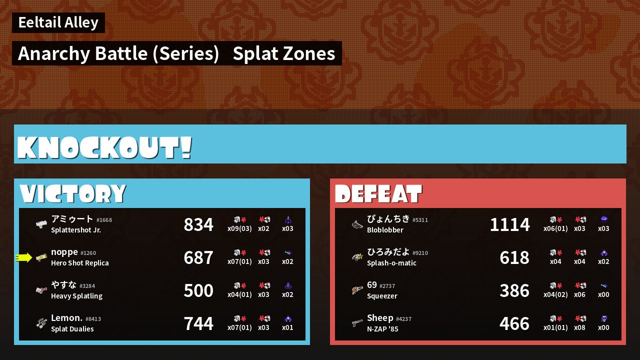 | Medals | #1 Enemy Splatter #1 Damage Taker #1 Ink Consumer | ||