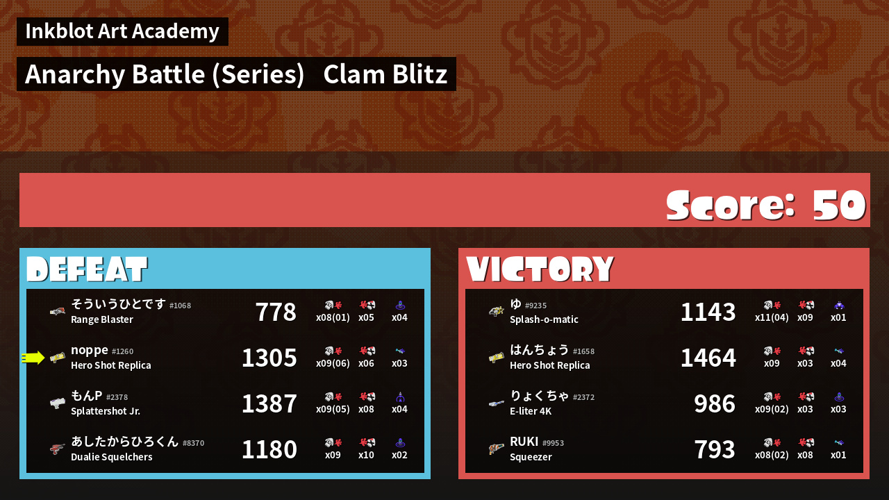 | スプラトゥーンのカルパッチョ はんちょう #1658 |  Hero Shot Replica     | 1,464 | 9 + 0 | 3 | 3.00 |  4 | |