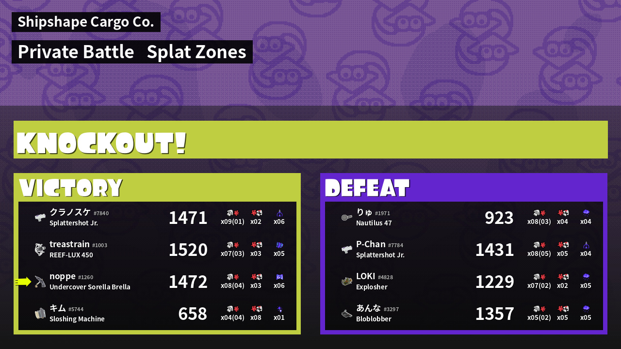 | Mode | Splat Zones - Private Battle | ||