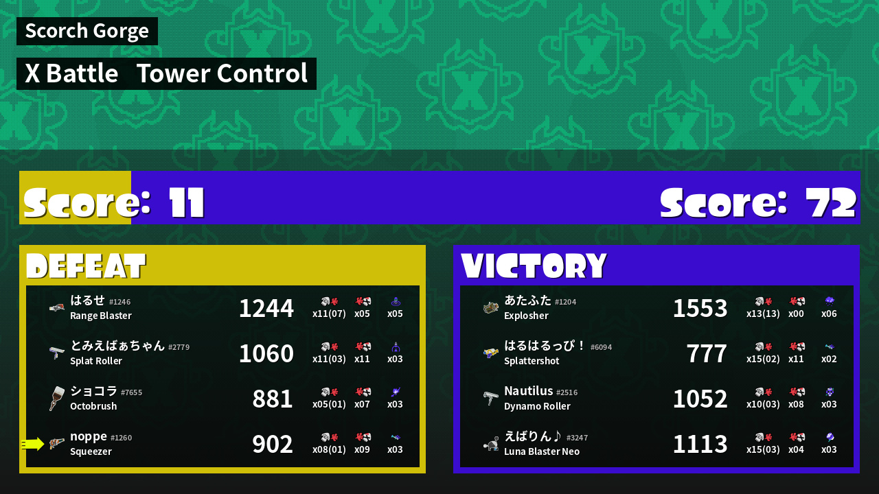 | Mode | Tower Control - X Battle | ||