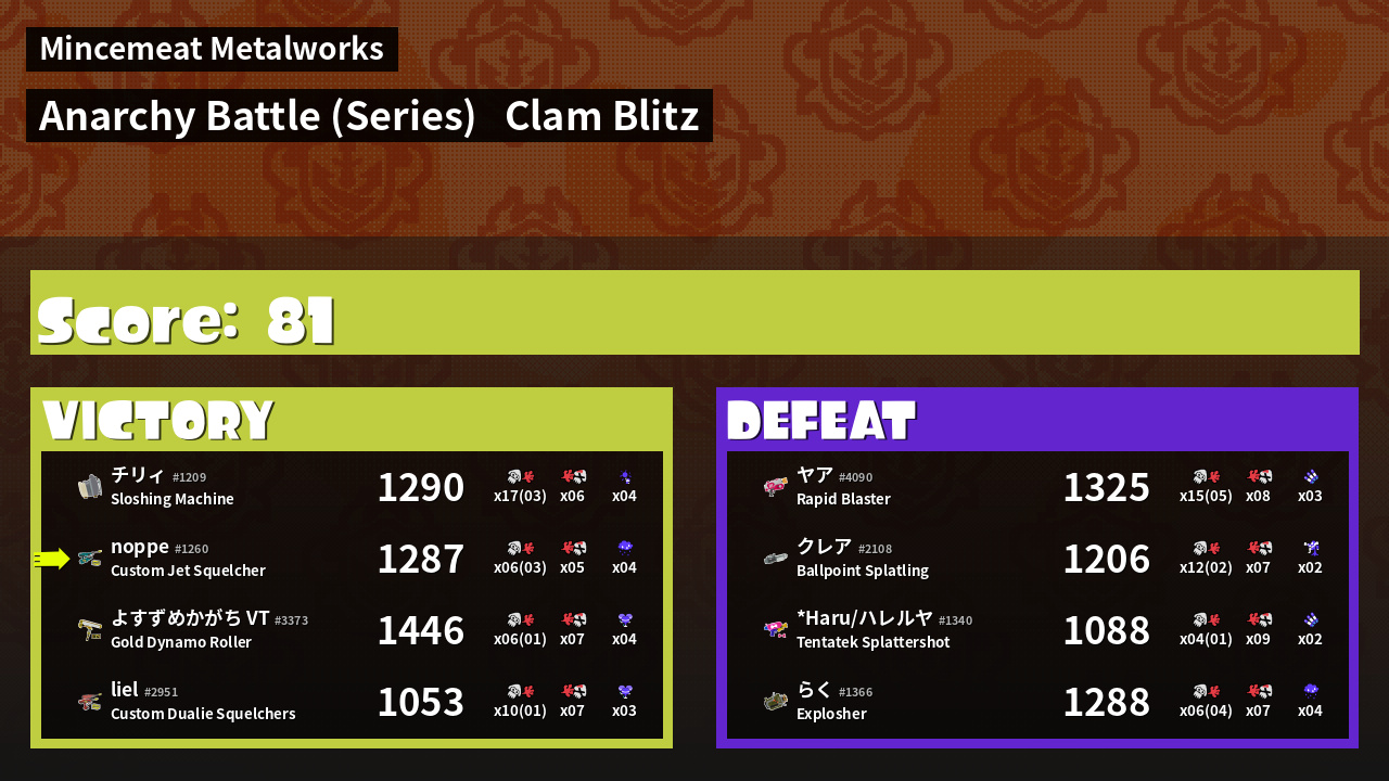 | Mode | Clam Blitz - Anarchy Battle (Series) | ||