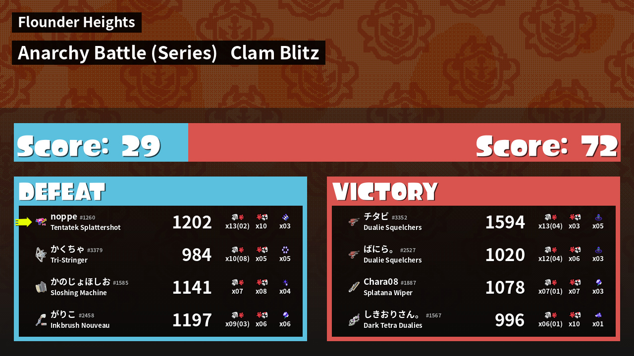 | Mode | Clam Blitz - Anarchy Battle (Series) | ||