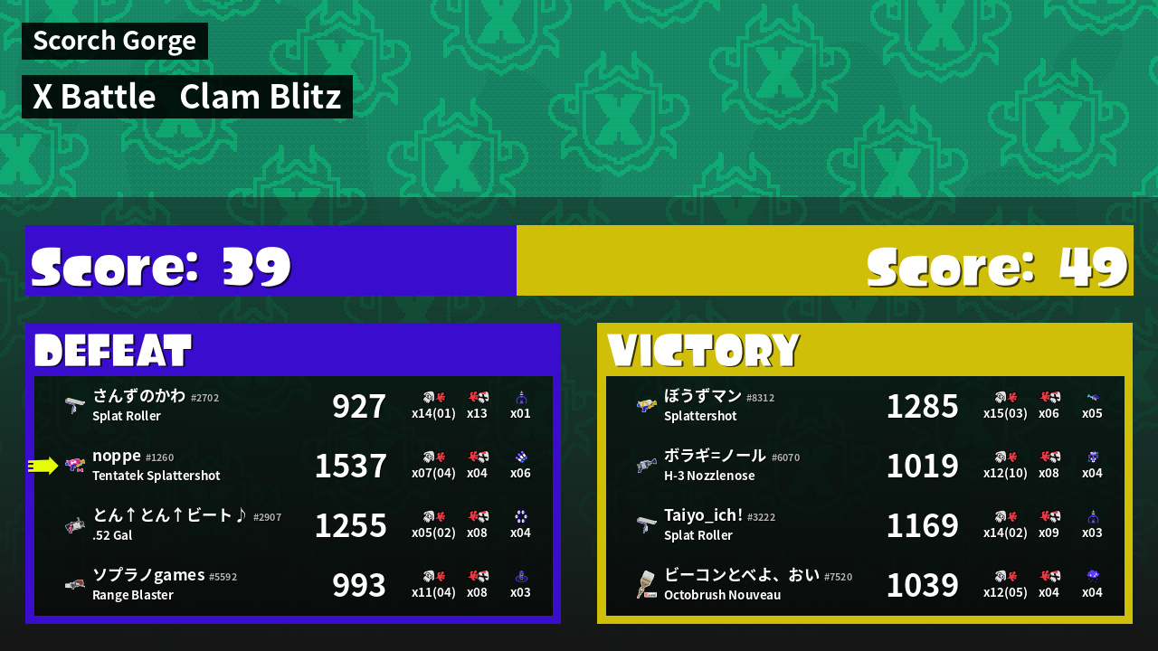 | Mode | Clam Blitz - X Battle | ||