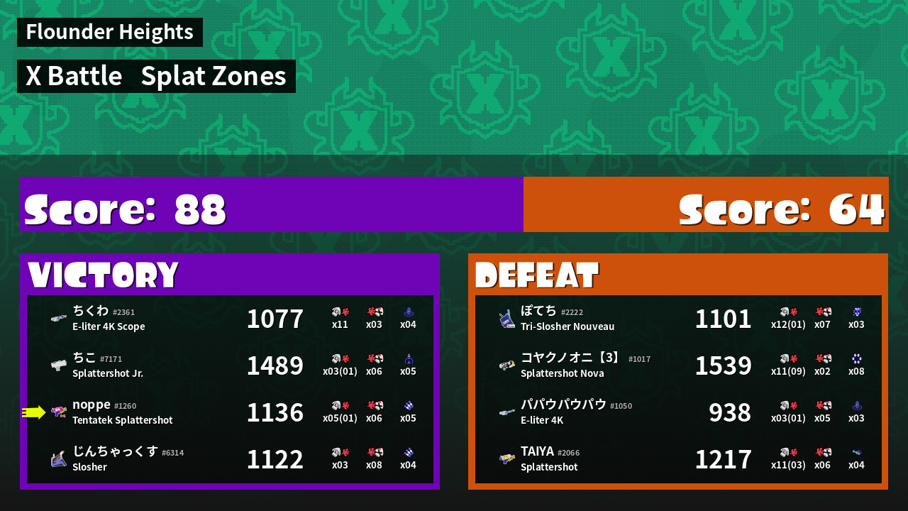 | Mode | Splat Zones - X Battle | ||