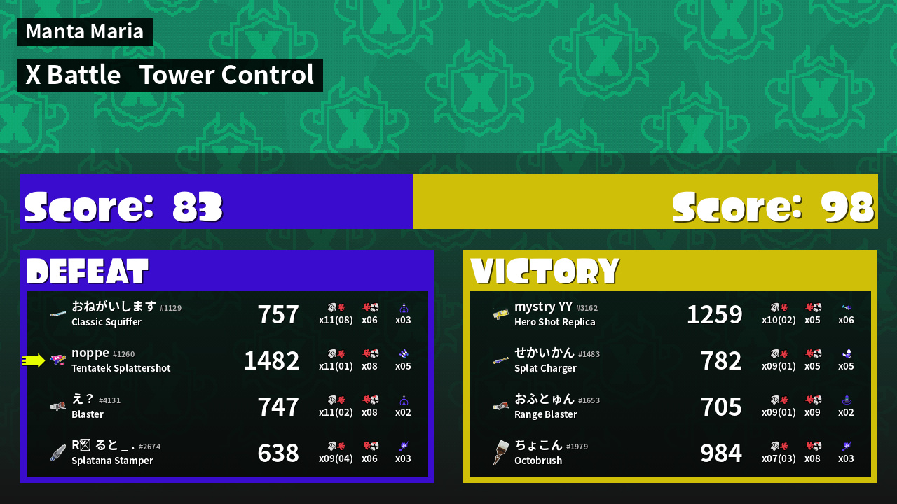 | Medals | #1 Overall Splatter #1 Turf Inker #1 Enemy Splatter | ||