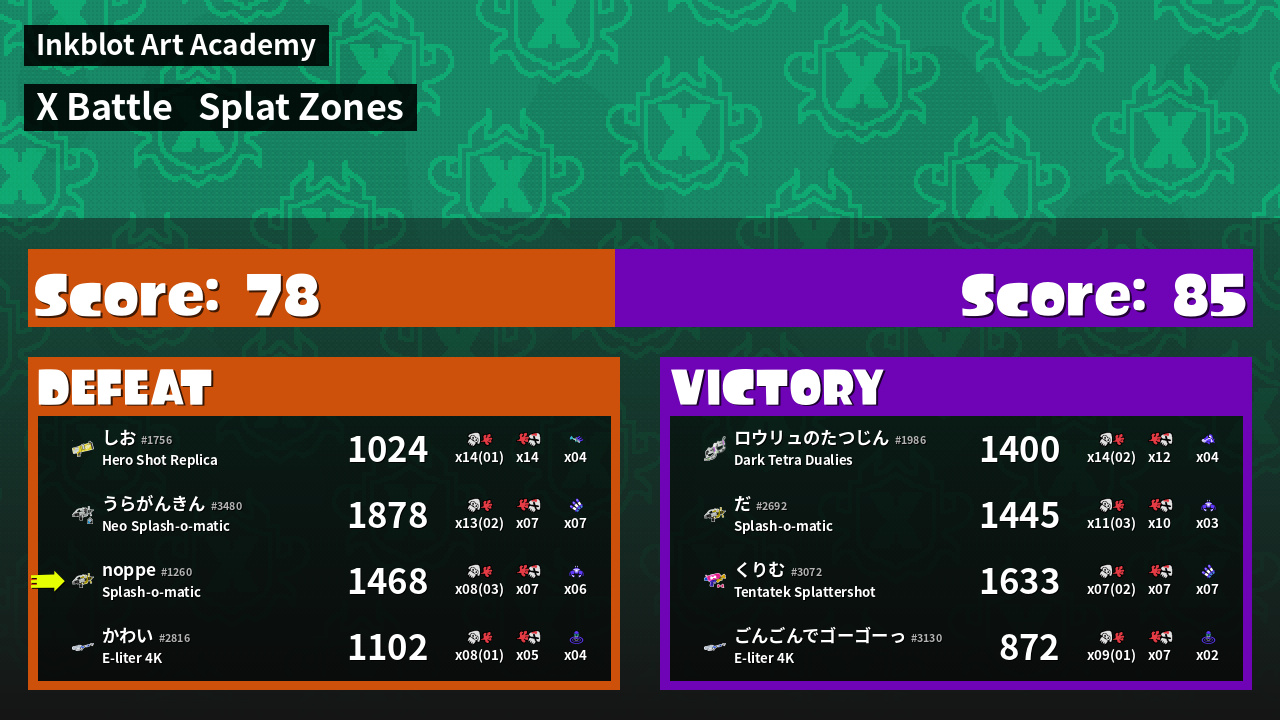 | Medals | #1 Super Jump Spot #1 Splat Assister #1 Damage Taker | ||