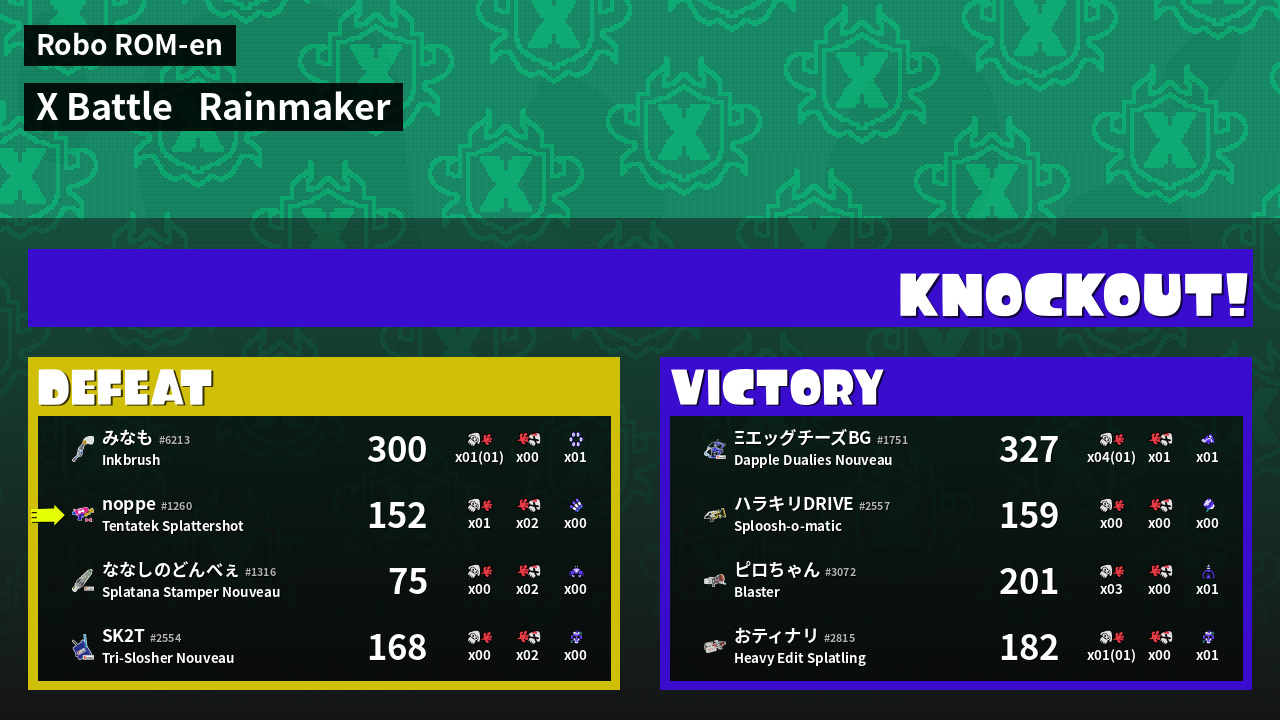 | Medals | #1 Overall Splatter #1 Enemy Splatter #1 Ink Consumer | ||