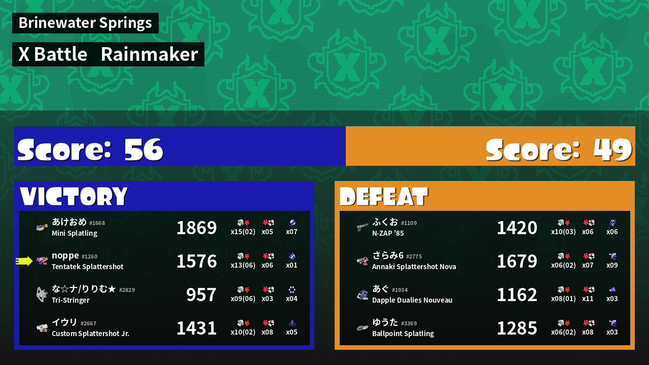 | Mode | Rainmaker - X Battle | ||