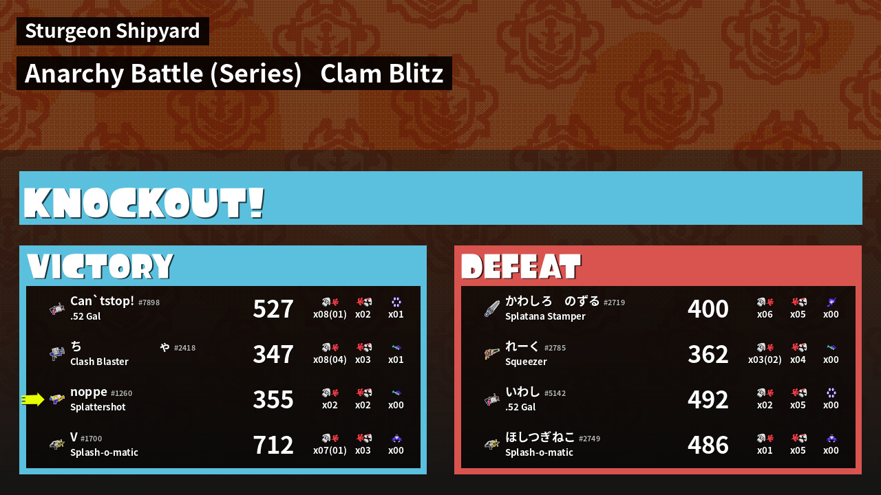 | Mode | Clam Blitz - Anarchy Battle (Series) | ||