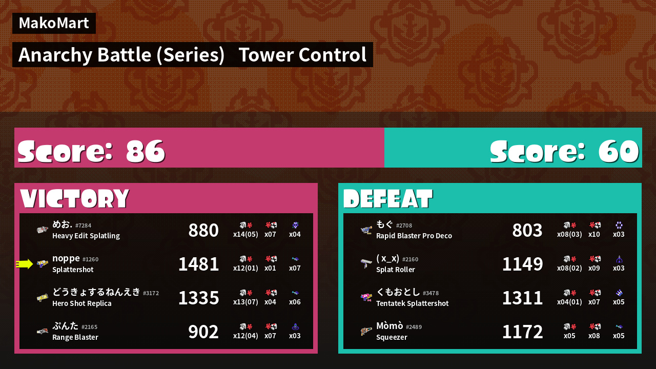 | Mode | Tower Control - Anarchy Battle (Series) | ||