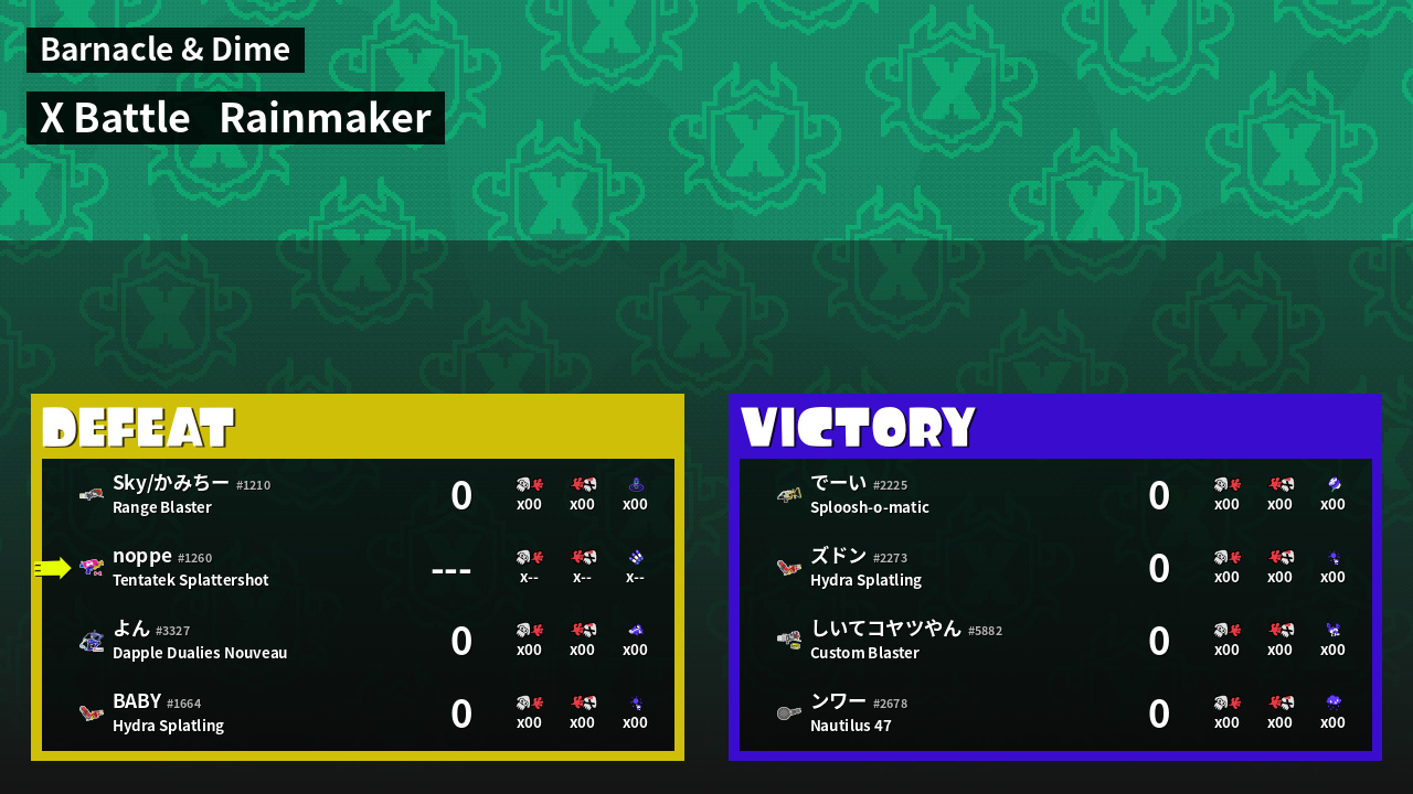 | Mode | Rainmaker - X Battle | ||