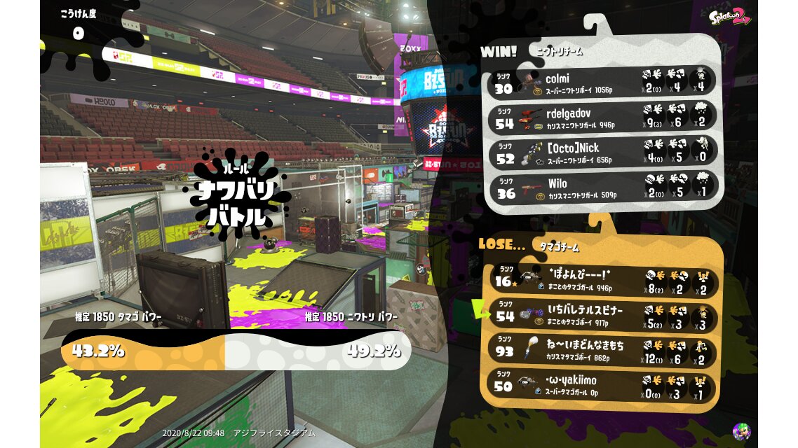 | My team's splatfest power | 1,850 | ||||||||||||||||||||||||||||