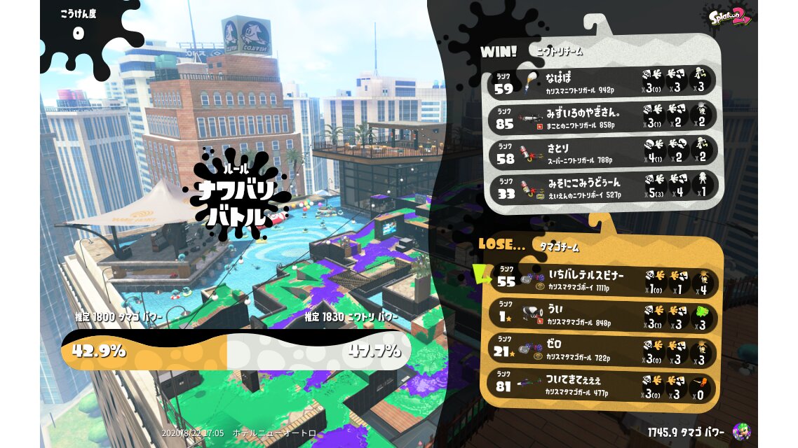 | Their team's splatfest power | 1,830 | |||||||||||||||||||||||||||||||||||||