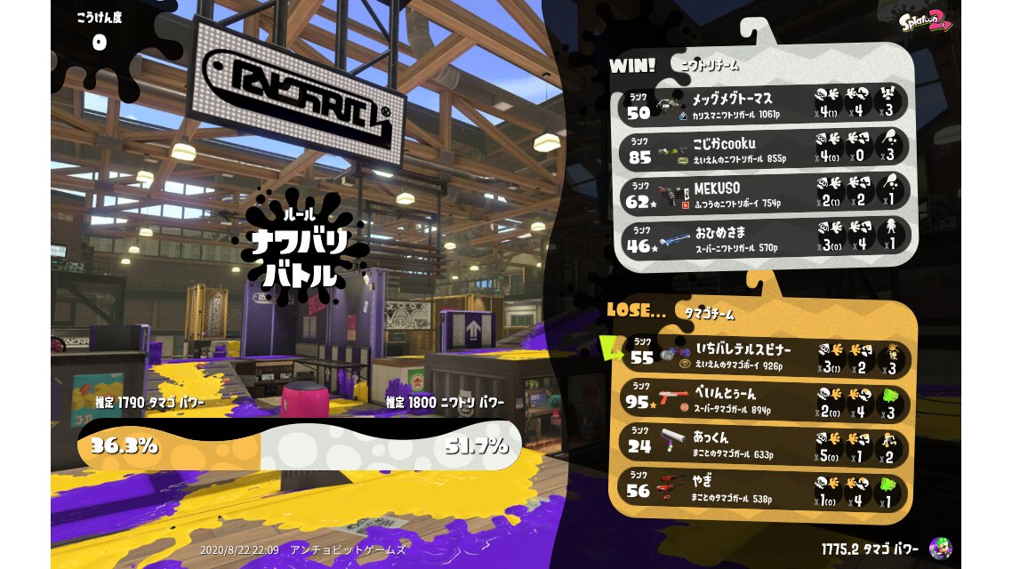 | My team's splatfest power | 1,790 | |||||||||||||||||||||||||||||||||||||