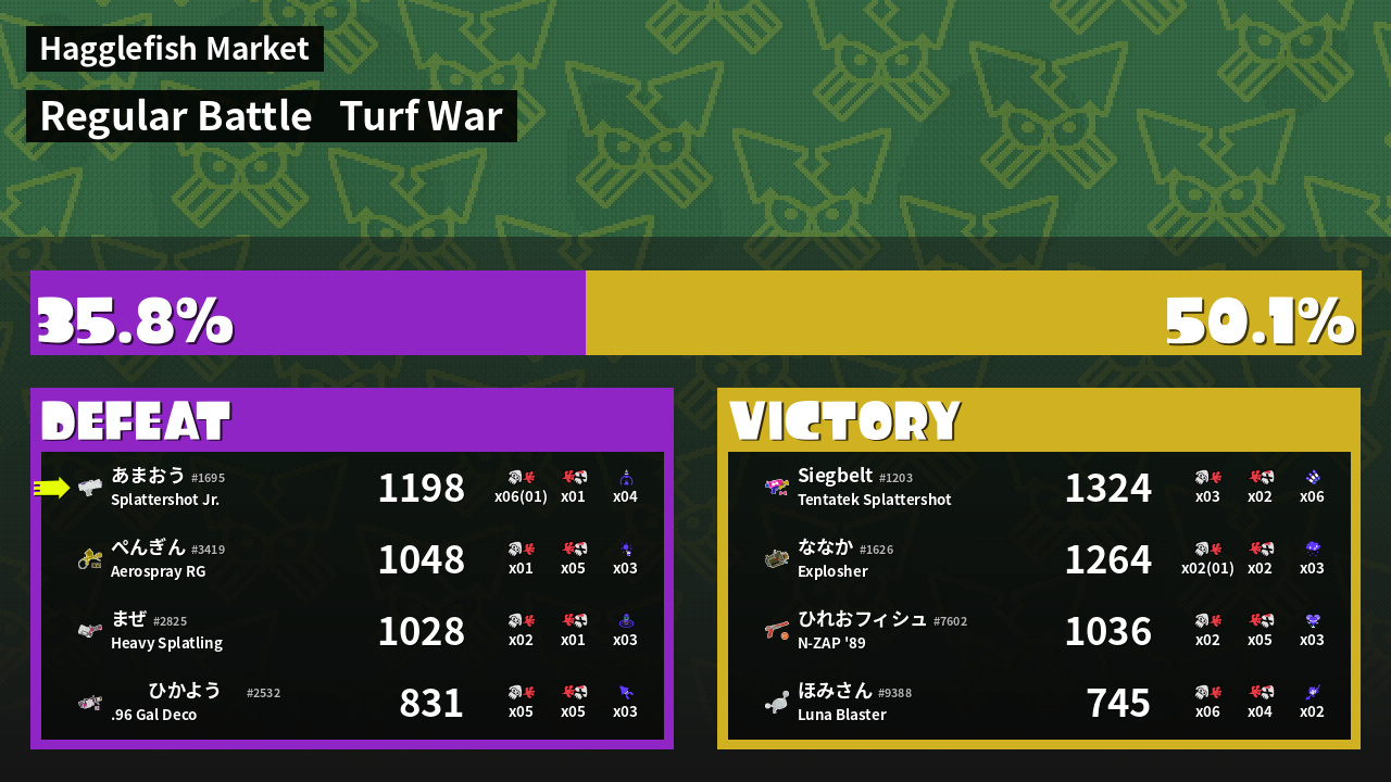| Medals | #1 Overall Splatter #1 Turf Inker #1 Enemy-Base Inker | ||