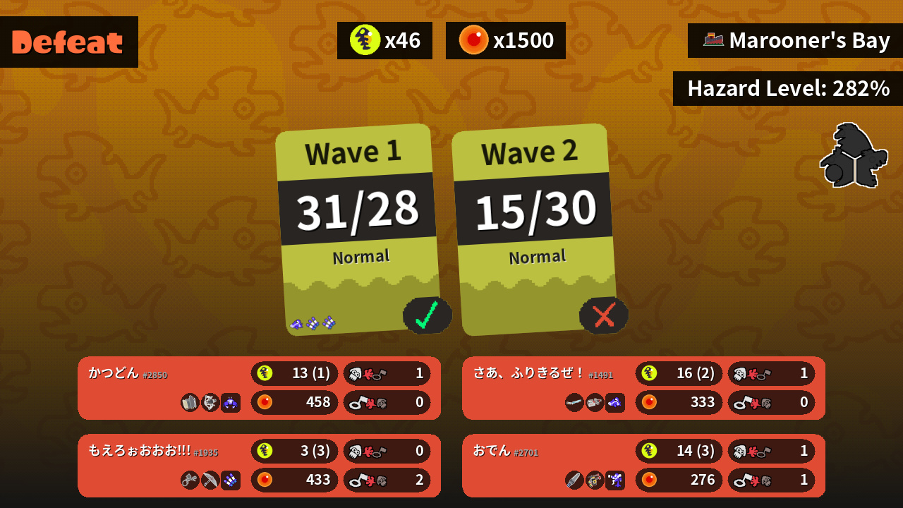 | Weapons | Sloshing Machine REEF-LUX 450 | Classic Squiffer Heavy Edit Splatling | Splatana Stamper Douser Dualies FF | Aerospray MG Splat Brella |