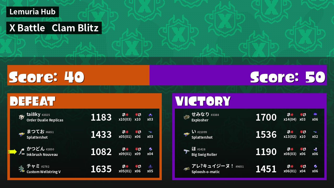 | Medals | #1 Score Booster #1 Enemy Splatter #1 Clam Stopper |