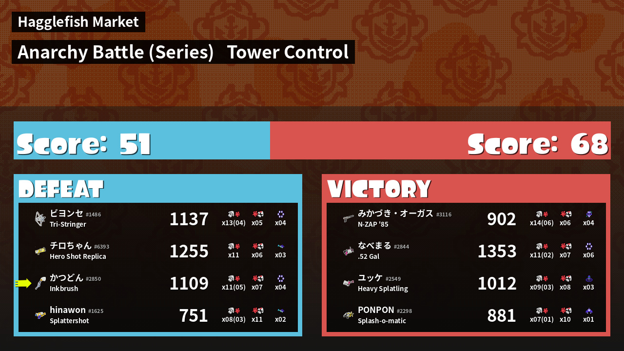 Results of かつどん's Battle