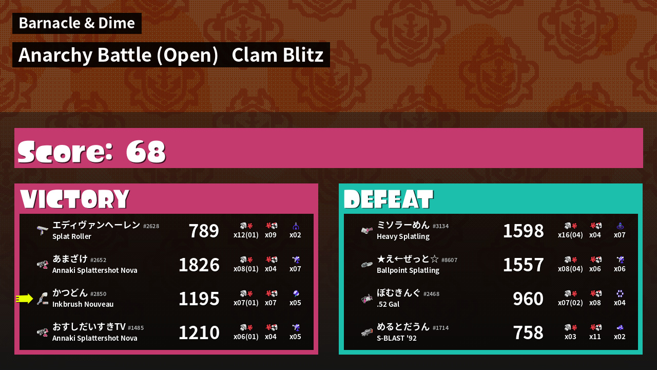 Results of かつどん's Battle