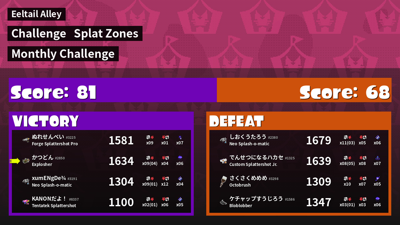 Results of かつどん's Battle