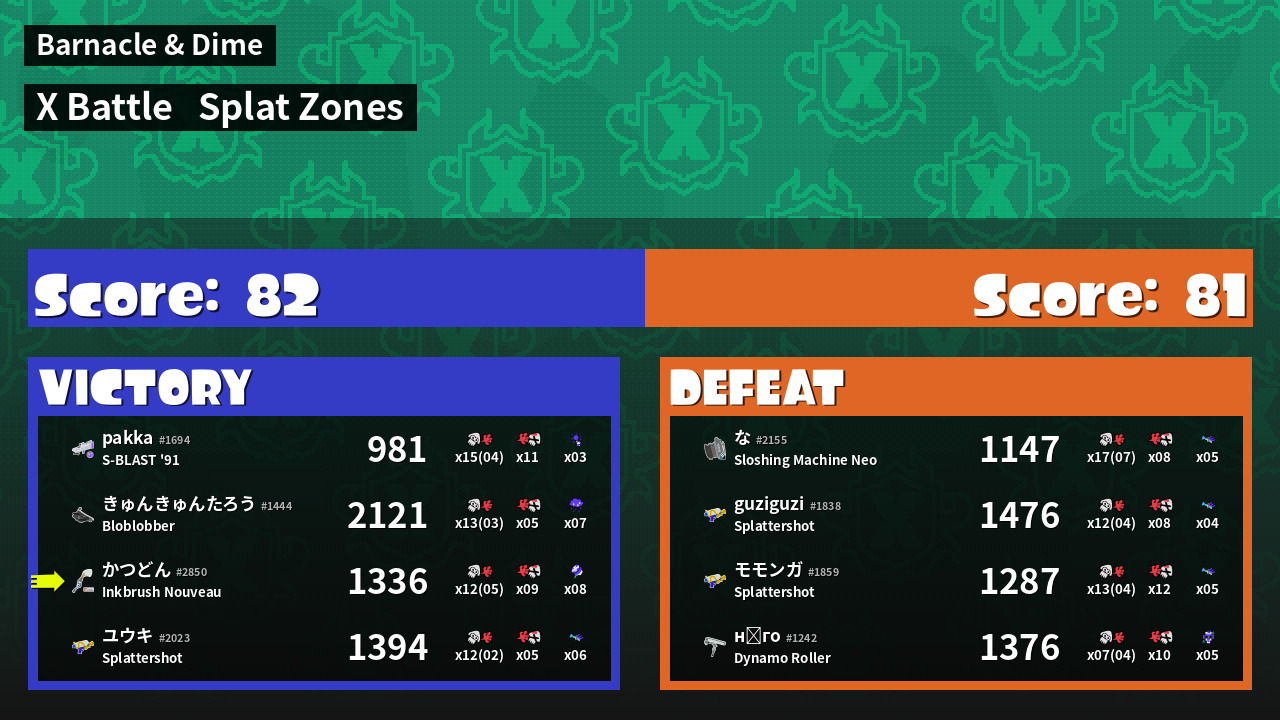 | Mode | Splat Zones - X Battle |