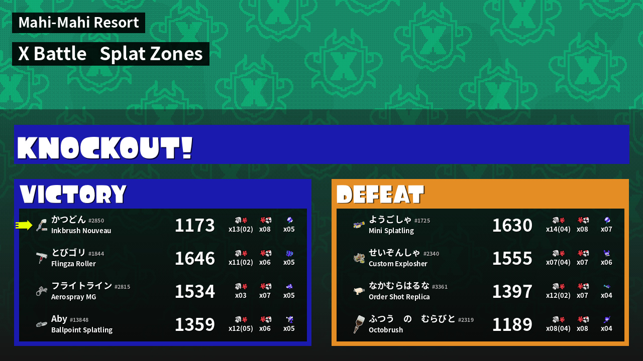 | Mode | Splat Zones - X Battle |