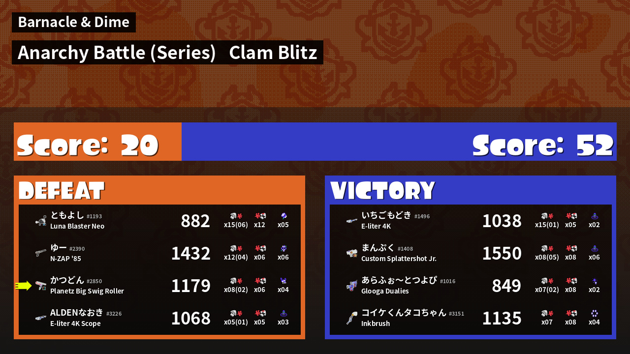 Results of かつどん's Battle