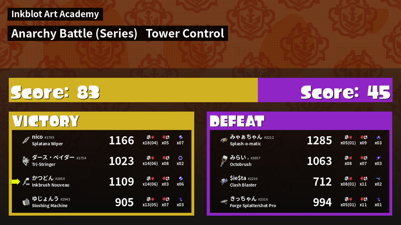 Kills / Deaths | 8 + 6 / 3 > Kill Ratio: 2.67 | ||