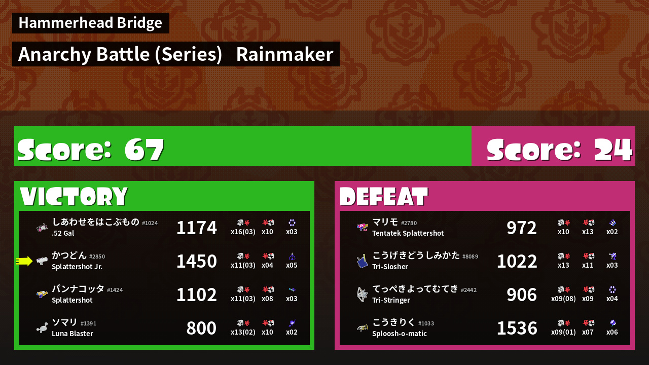 Results of かつどん's Battle