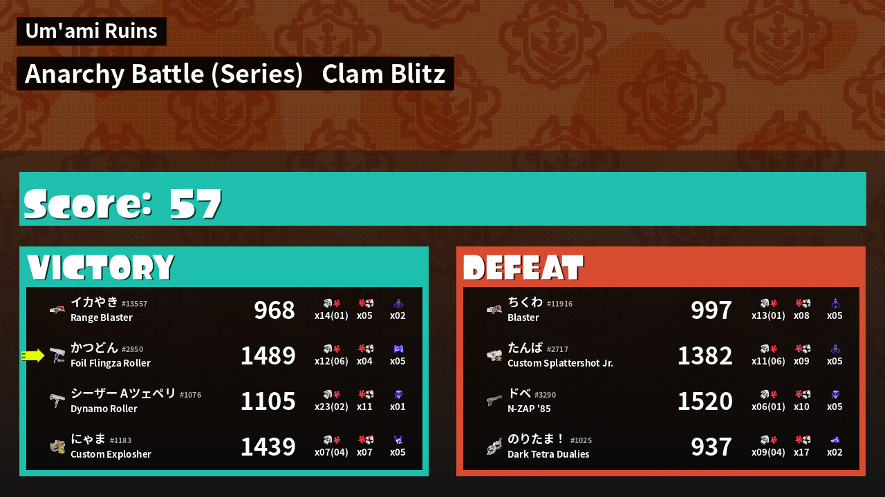 Results of かつどん's Battle