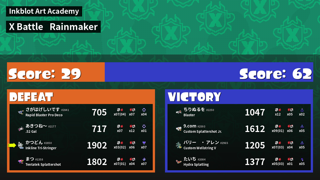 | Weapon | Inkline Tri-Stringer ( Sprinkler / Super Chump) |
