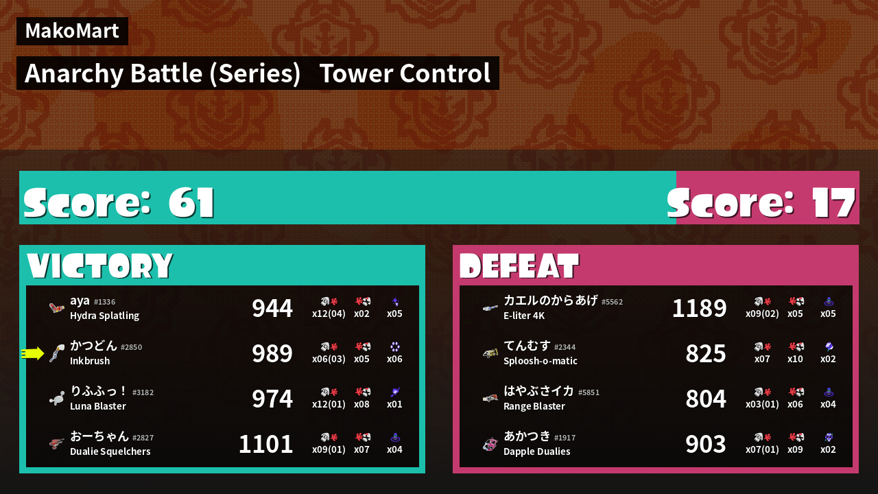 Results of かつどん's Battle