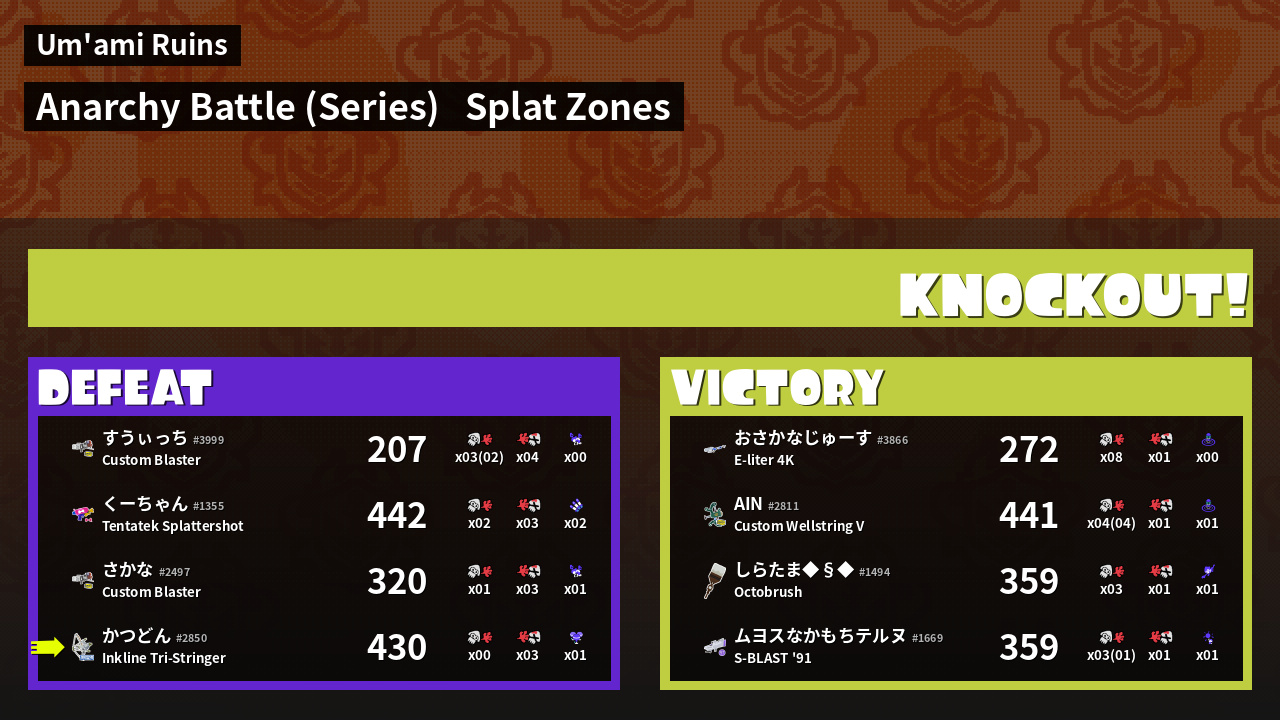 | Mode | Splat Zones - Anarchy Battle (Series) |