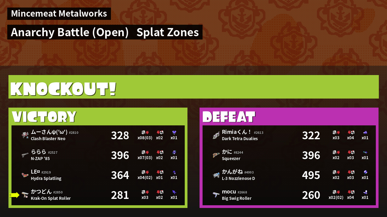 Results of かつどん's Battle
