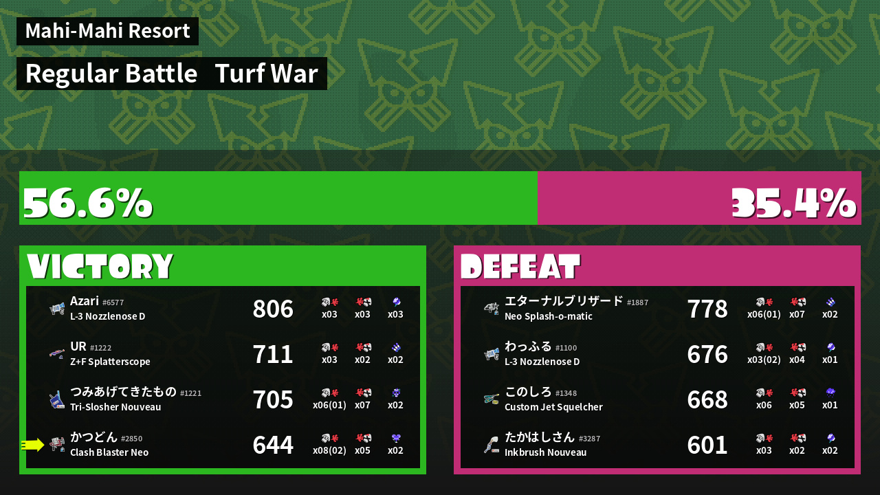 Kills / Deaths | 6 + 2 / 5 > Kill Ratio: 1.20 | ||