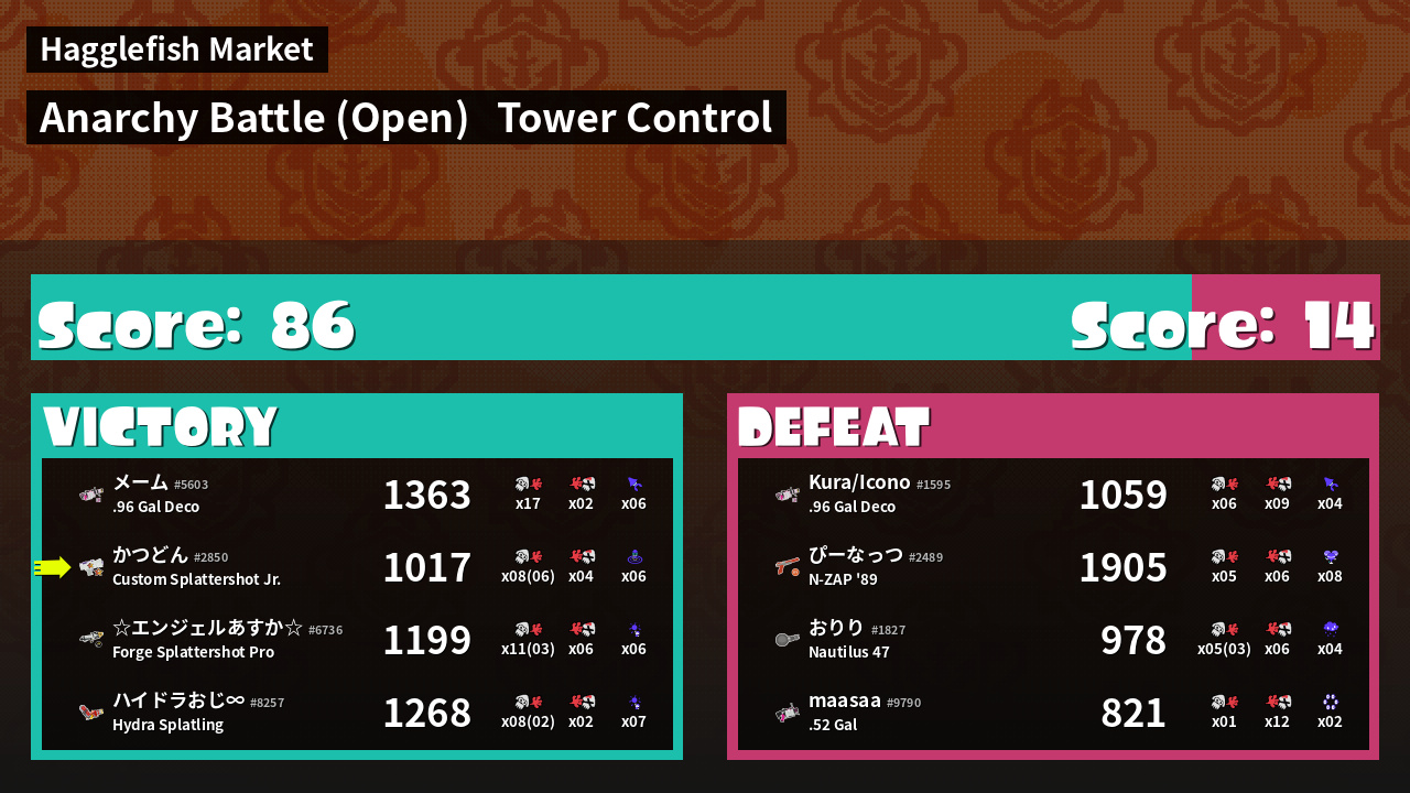 Results of かつどん's Battle