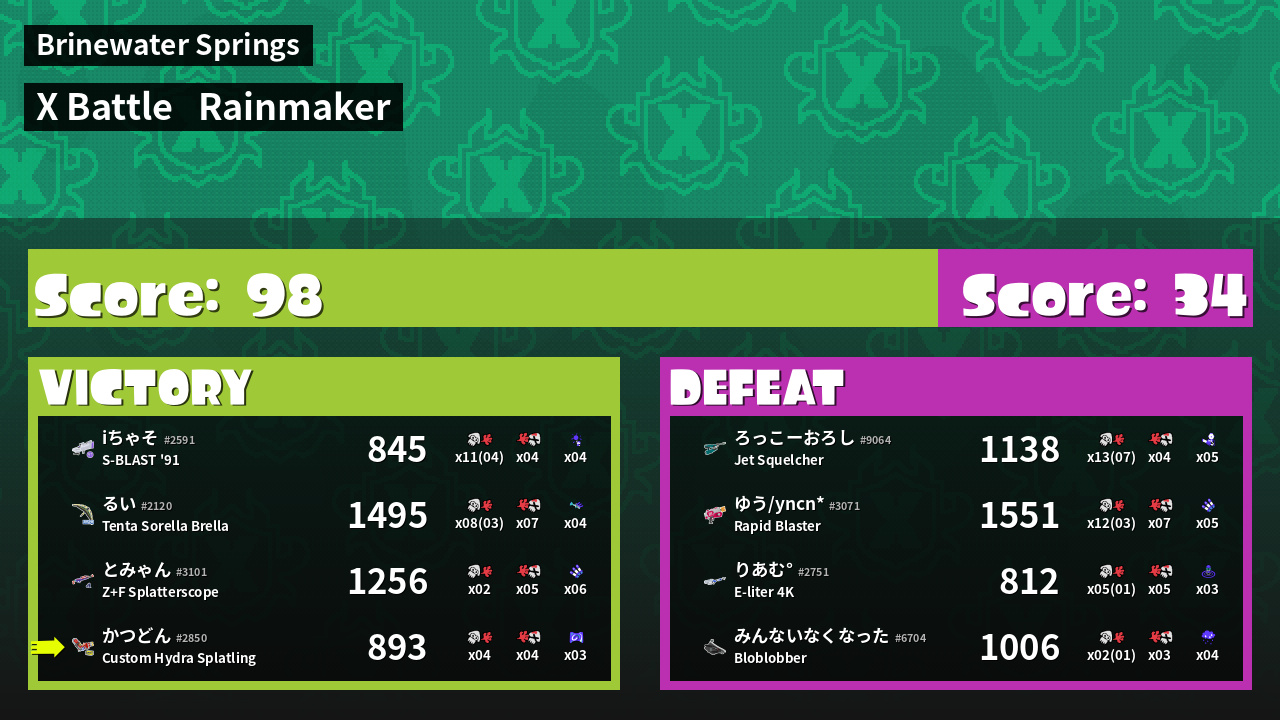 | Mode |    Rainmaker -   X Battle |