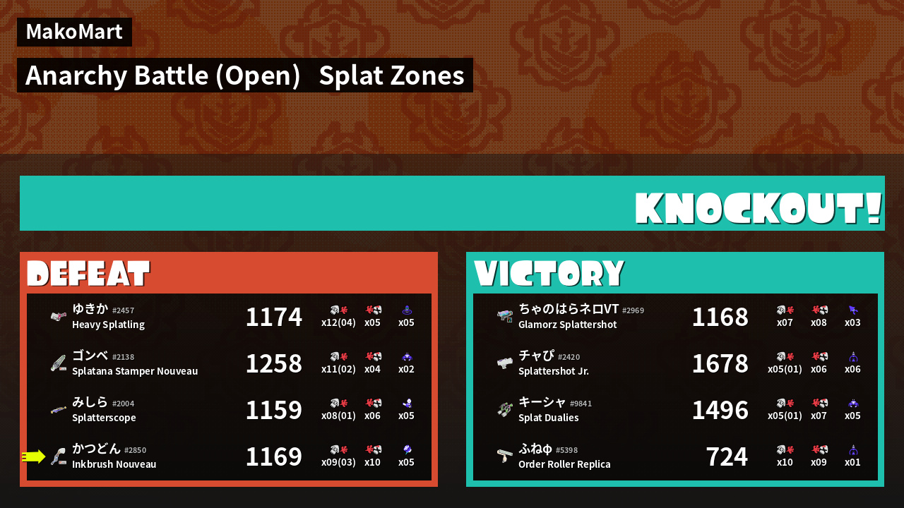 | Mode | Splat Zones - Anarchy Battle (Open) |