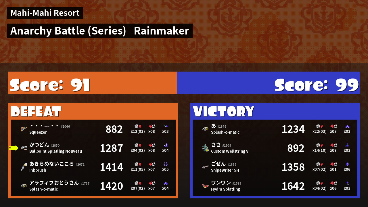 Results of かつどん's Battle