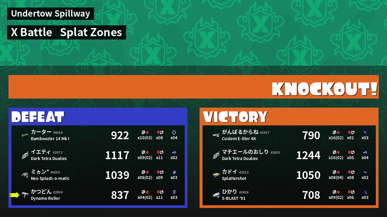 | Medals | #1 Ground Traveler #1 Tacticooler User #2 Splat Assister |