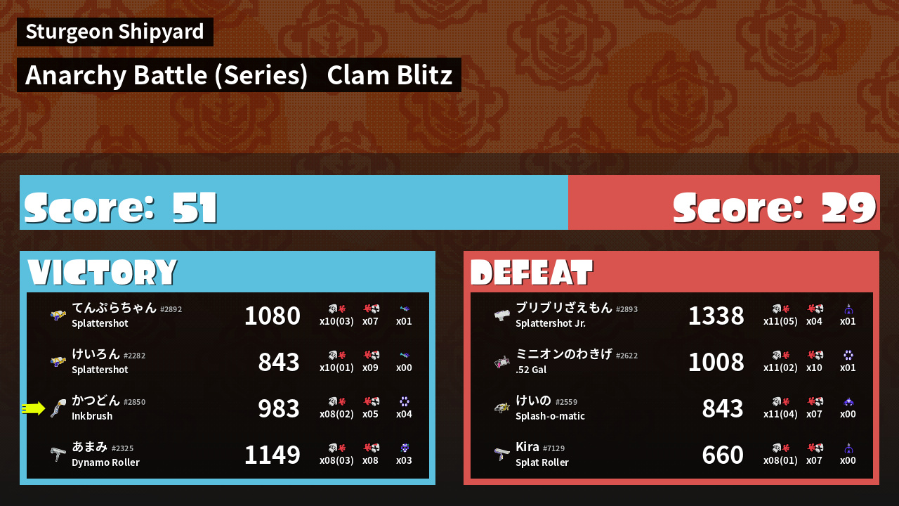 Results of かつどん's Battle