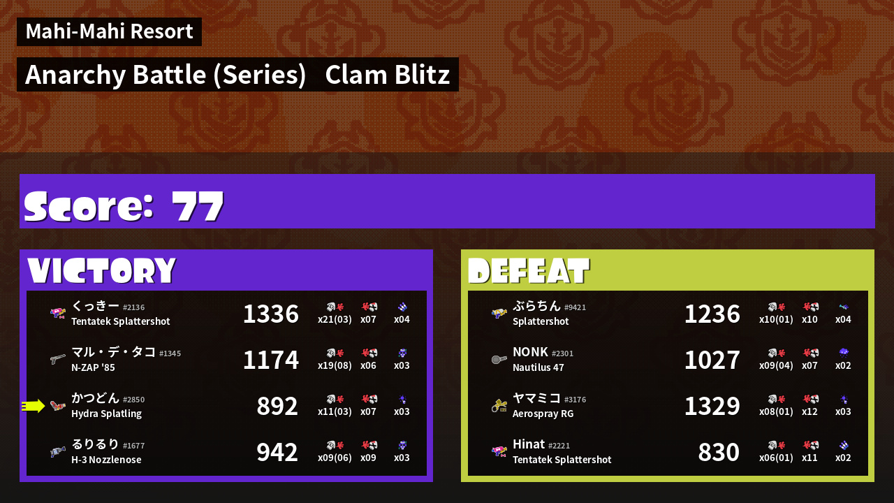 Results of かつどん's Battle