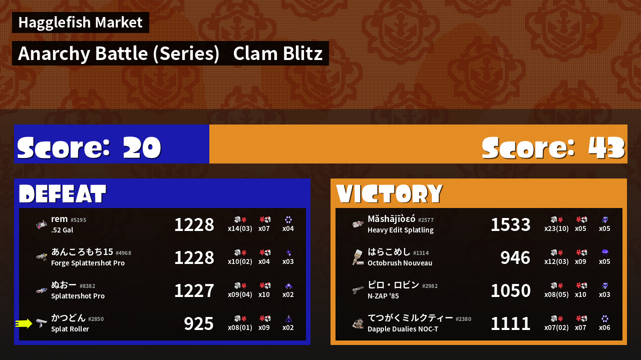 | Mode | Clam Blitz - Anarchy Battle (Series) |