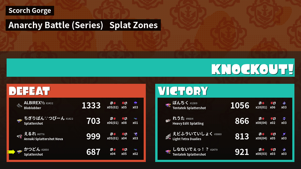 Results of かつどん's Battle