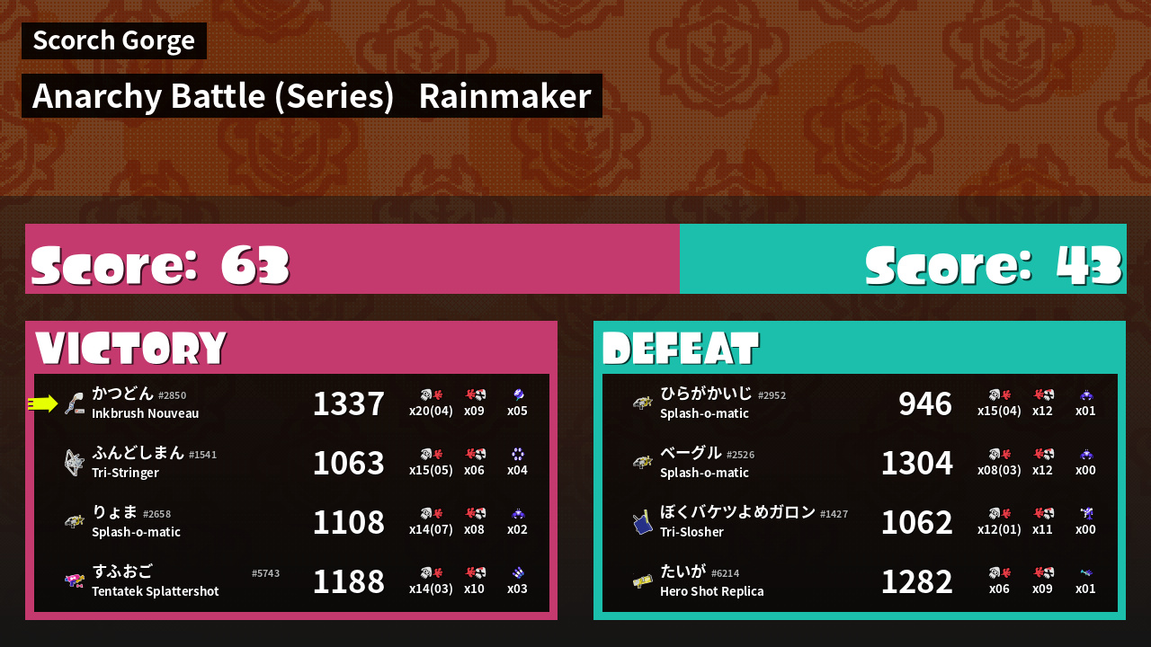 Results of かつどん's Battle