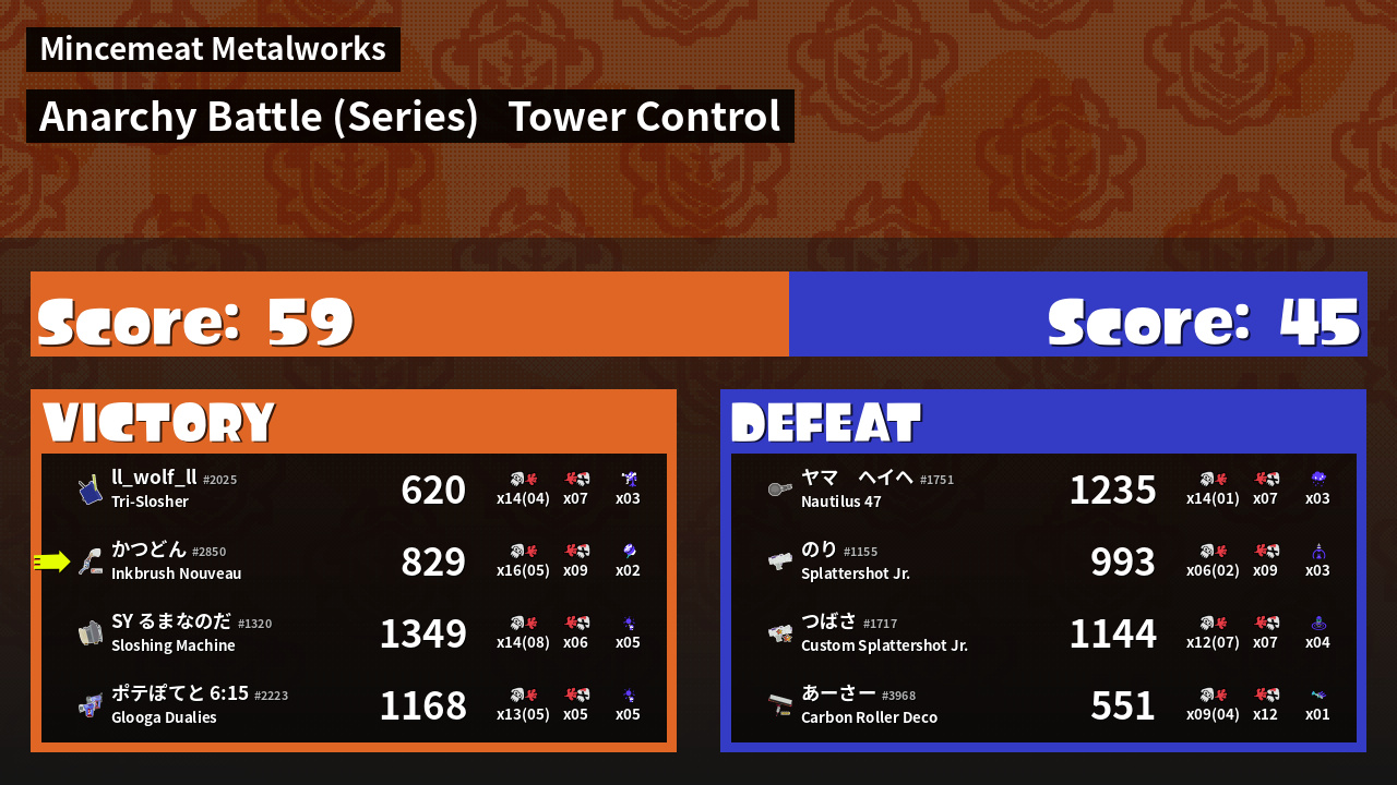 Results of かつどん's Battle