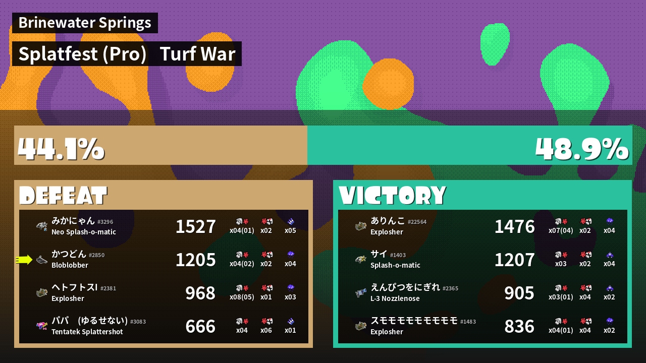 Results of かつどん's Battle