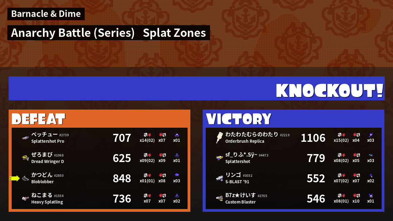 | Mode | Splat Zones - Anarchy Battle (Series) |